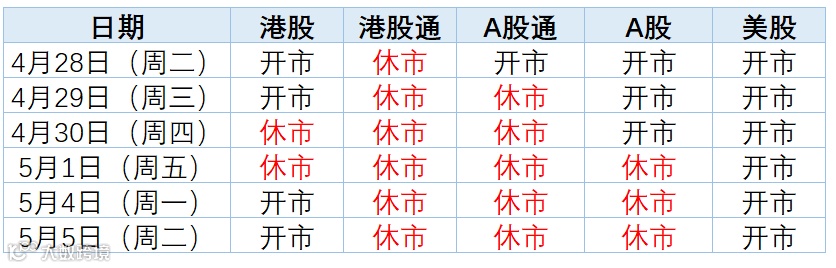 导读:安信国际 | 五一休市安排:今日港股通休市(4月28日)