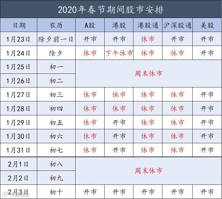 因春节假期,海内外市场休市安排如下: