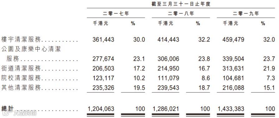 向香港客户提供环境卫生服务,可大致划分为楼宇清洁服务、公园及康乐中心清洁服务、街道清洁服务、院校清洁服务及其他清洁服务。
