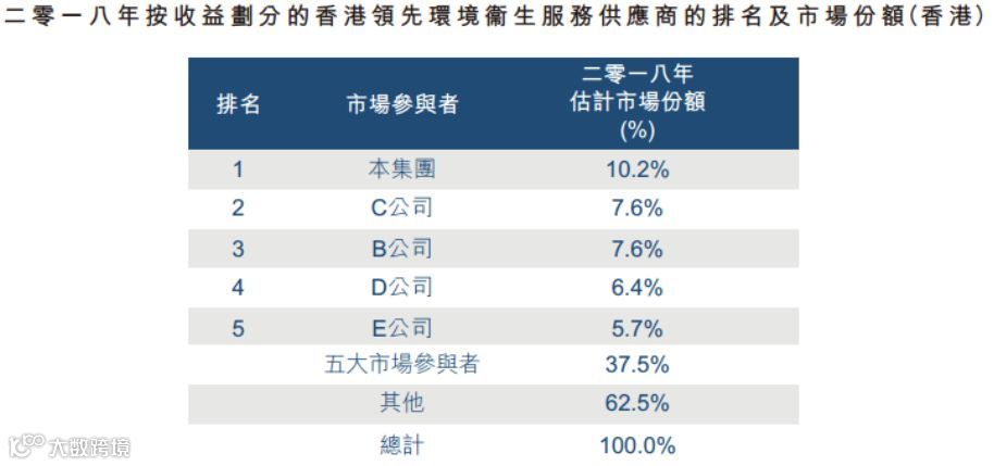 该集团于2018年按收益计为香港最大的环境卫生服务供货商。