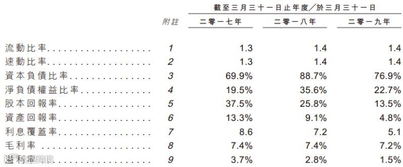 公司的资本负债比率已从69.9%、88.7%及76.9%升至较高水平,因此若市场出现不明朗因素而导致利率波动,且持续增加并倚重债务融资,则可能令公司业务营运变得更加困难。