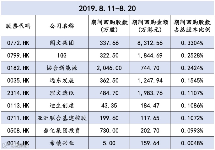 安信国际投资咨询部整理2019年8月中旬(8.11-8.20)的市场变化、精选研报观点与港股回购,供各位投资者参考。