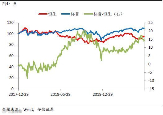 从中期的视角来看,此次G20超预期的影响可能并不会太大。我们将2017年底的美股和港股的指数标准化为100,可以看到两者从2018年6月15日(美国宣布加关税)之后出现了明显的背离,两者差距最高达到20%。在2019年年初两者差距最小的时期,两者差距大约在8%左右。目前两者差距在14%左右,而目前或者在可预见的将来,中美贸易摩擦的程度可能要比2019年年初要大,因此两者差距难以回到8%,预计就在11%左右。假设短期风险资产能够修复2-3%的话,那么中期来看继续修复的空间是不大的。