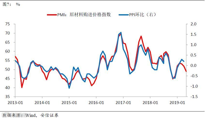 价格指数走弱相对容易理解。从历史的规律上看,PPI除了跟随经济的大周期之外,还存在8-10个月的小周期。目前的小周期正好在见顶回落的阶段。因此,我们预计PPI在未来的4-5个月都将偏弱。