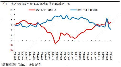 5月工业增加值同比录得5.0%,较4月大幅回落0.4个百分点,创历史新低。其中供改组生产再次走强,而表征经济自然状态的非供改组持续回落,与供改组生产相关的高炉开工率、粗钢、焦煤、水泥产量均同步走高。