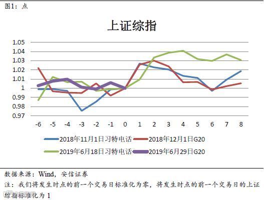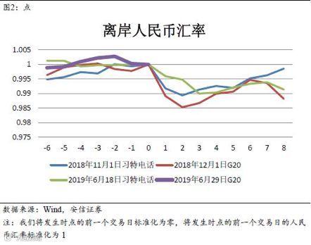 短期内看,我们认为G20会谈超预期在一定程度上将带来风险资产的提振。参考2018年11月1日习特电话、2018年12月1日G20和2019年6月18日习特电话后的市场走势,上证综指在1-2天内上涨2-3%,人民币汇率升值1%左右是可期的。
