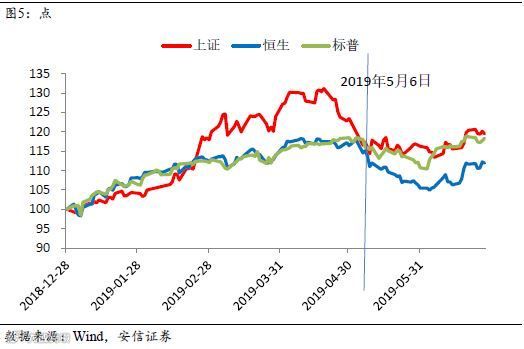 具体到A股而言,除了短期内的利好,我们可能需要注意中期的缺口修复。2019年5月6日A股大跌后基本上是横盘震荡,而港股则明显下跌,美股在初期也有一定程度的下跌;因此,A股的表现是较为反常的。所以,从中期的角度来看,需要留意A股的缺口回补。