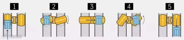 最牛的是,这种创新的转轨系统允许两个井道首尾水平相连。