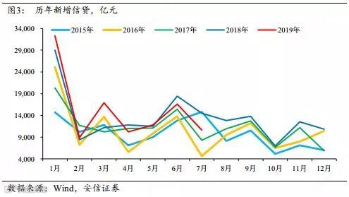 7月新增信贷10600亿元,较去年同期下降3900亿元;余额同比12.6%,较上月收窄0.4个百分点,连续四月出现同比回调,创去年以来最大单月降幅。