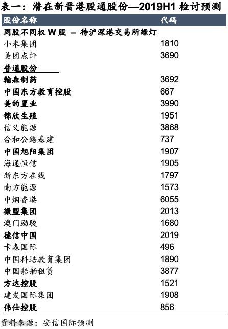 对于同股不同权股份(目前有小米1810.HK及美团点评3690.HK),沪深港三地交易所经过商议后于12月9日共同宣布,三个交易所已就不同投票权架构公司纳入港股通股票具体方案达成共识,并将抓紧制订相关规则,在完成必要程序后向市场公布,预计规则将于2019年年中生效实施。我们预期同股不同权股份将能纳入港股通标的。
