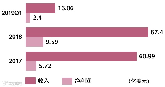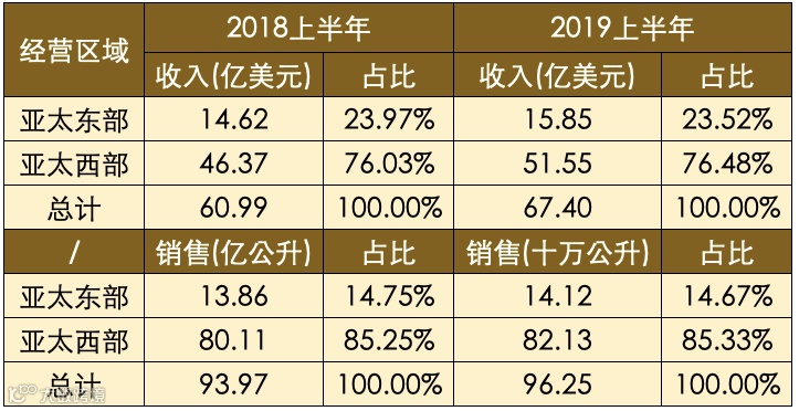 2017年、2018年,收入分别为60.99亿美元及67.4亿美元,内生增长7.4%。2017年至2018年,每百升收入增长4.9%,主要受产品组合向高端类别转移所推动。