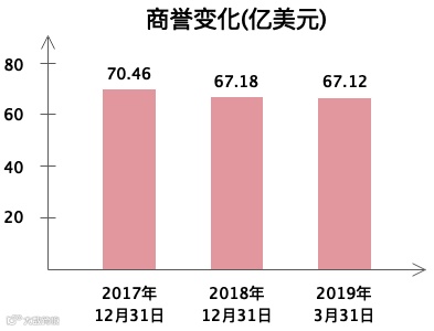 2019年3月31日账面上的商誉约为67亿美元,占公司总资产的42%。