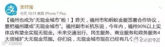 在继杭州正在努力打造第一个无现金城市之后,6月28日上午,中国东南第一座“无现金城市”宣布启动:福州市和蚂蚁金服联合宣布,要把福州打造成“无现金城市”,年内实现福州90%以上的实体店的“无现金”覆盖。