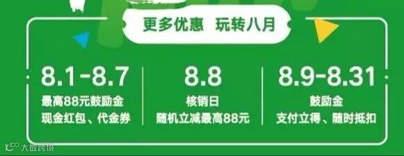 8.1~8.7,用户消费可获得鼓励金等优惠;