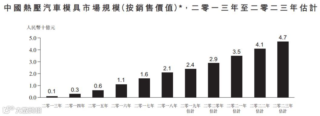 2)公司未来实现快速增长的突破口无疑为热压汽车模具,但市场规模较小;