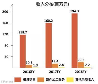 如上图可知,公司主要收入来源是模具销售,其中主要包括汽车模具和家电模具,占收入比近90%。