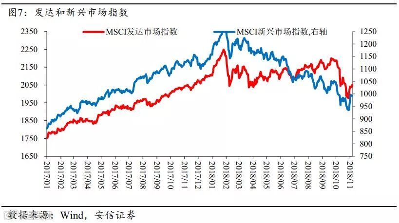 新兴市场方面,10月新兴市场制造业PMI反弹,同期美元债收益率上行,汇率指数企稳,股指于月底触底上升,新兴市场经济的回暖值得持续关注。发达市场方面,在美股的带动下,11月发达市场股指大幅反弹。
