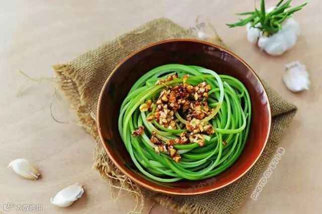 蒜苔、盐、油、生抽、香辣酱、香油、醋