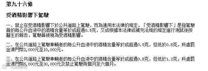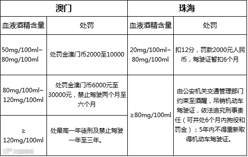 喝酒后开车,珠海、澳门处罚有不同