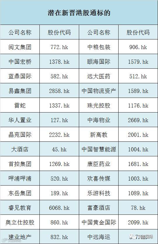 由于港股通名单的构成,是基于恒生综指大型及中型股 + 平均市值超过50亿港元的小型股 + 部分非ST A+H股份,恒生综指的成员变动将带动港股通股份名单的变动。