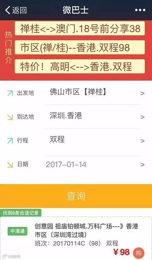 关注“微巴士”,点进“订票”功能,就有港澳专车。