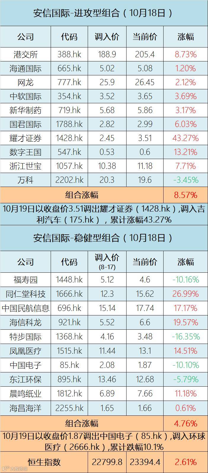 安信国际证券(香港)在8月17日发布两个备战深港通的优质港股组合,现调整内容如下