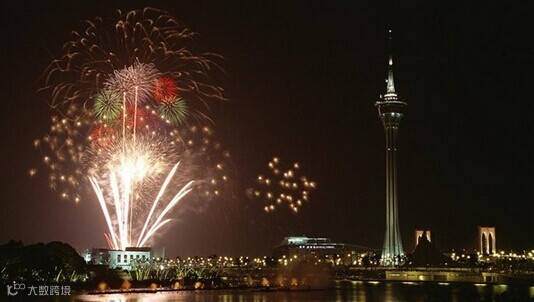 地点:澳门旅游塔对开海面盛大绽放。
