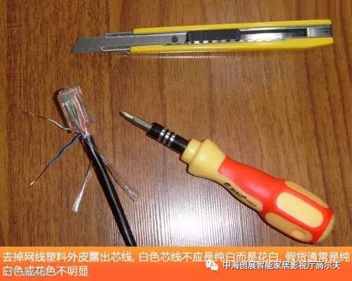这一步只需用剪刀去掉一小截线外面的塑料包皮,使露出4对芯线。在这里我们还是通过 “看”的方法来进一步判别,真5类/超5类线4对芯线中白色的那条不应是纯白的,而是带有与之成对的那条芯线颜色的花白,这主要是为了方便用户在制作水晶头时区别线对。而假货通常是纯白色的或者花色不明显。还有一点就是4对芯线的绕线密度,真5类/超5类线绕线密度适中,方向是逆时针。假线通常密度很小,方向也可能会是顺时针(比较少),这主要是因为在制作方面比较容易,这样生产成本也就小了。