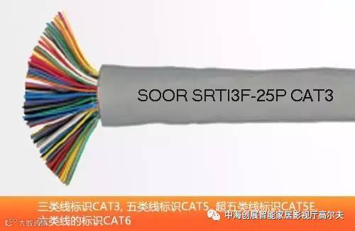 三类线的标识是“CAT3”,带宽10M,适用于十兆网基本已淘汰;五类线的标识是“CAT5”,带宽100M,适用于百兆以下的网;超五类线的标识是“CAT5E”,带宽155M,是主流产品;六类线的标识是“CAT6”,带宽250M,用于架设千兆网,是未来发展的趋势。真正的5类线在线的塑料包皮上印刷的字符非常清晰、圆滑,基本上没有锯齿状。假货的字迹印刷质量较差,有的字体不清晰,有的呈严重锯齿状。