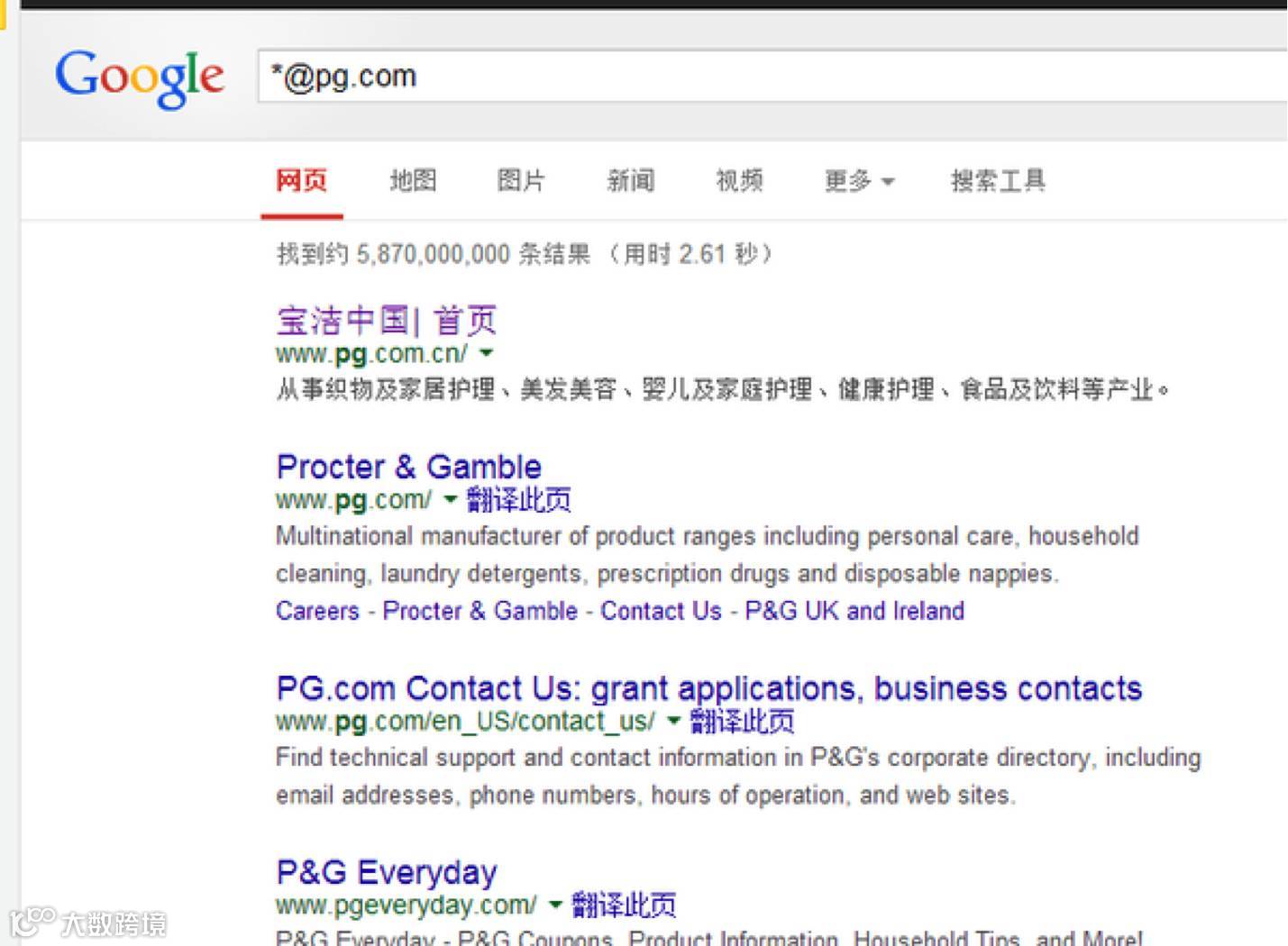 Google 很强大。举个例子, 在谷歌输入*+邮箱后缀,Enter,就会出现这家公司的很多E-mail。(PS,如果你无法翻墙,那我推荐您试试AOL,跟Google用起来差不多)
