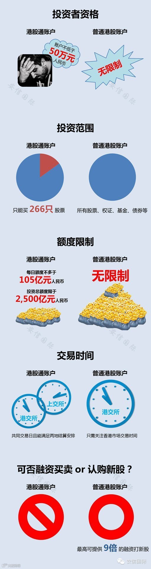 国证国际安信国际证券(香港)用一张图为您对比港股通账户和普通港股账户的区别,仅供大家参考