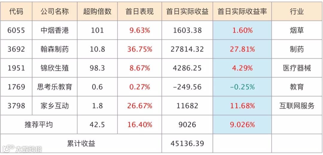 可以看到,由于新股有中签率的影响,实际收益率比新股首日的表现要低一些,尤其是首日涨幅不大的新股,有可能会导致实际收益为负值。