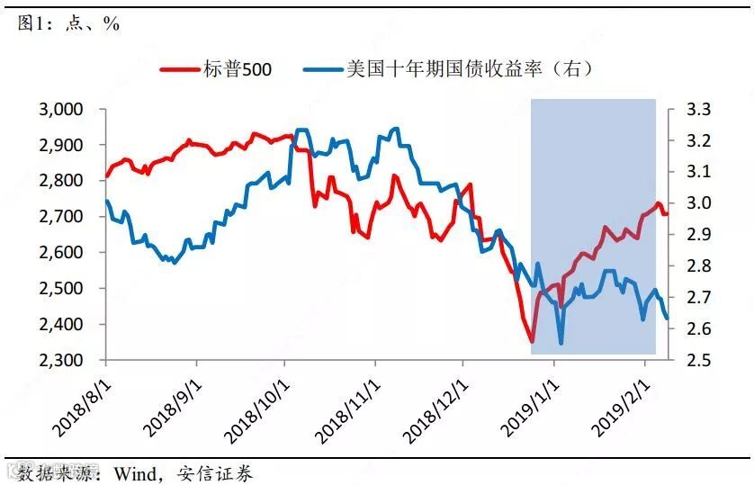 2018年圣诞节至2019年2月初,全球资本市场显著的从Risk Off模式转向Risk On模式,这一转变在各类资产上都有相应的体现。美国股市从低点反弹了16.4%左右;同时,美国十年期国债收益率从低点的2.55%回升,最高反弹至2.79%左右。