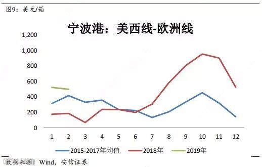 美国政府“开门”后公布了2018年11月的美国进口数据。从11月的数据上看,中国出口部门“抢出口”的操作在2018年11月已经明显消退,这与中国海关公布的11月出口增速大降相印证。另外,从中国港口的集装箱运价情况来看,“抢出口”在2019年没有出现反弹,而在逐步消退。因此,在全球经济仍在下行的大背景下,中国最近几个月的出口将依然低迷。