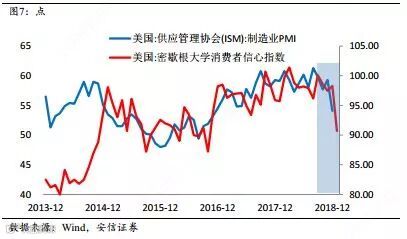 “Risk Off”向“Risk On”模式转变的背后,实质上反映的是市场对美国经济未来走势的担忧。尽管美国经济短期内仍较强,但最近表现出了一些疲态。制造业PMI和消费者信心指数均大幅下跌。与此同时,美国联邦政府关门时间创历史纪录、全球经济不振等因素也增加了市场的忧虑。截止目前,美国国债的期限利差相比年初变化不大,VIX指数尽管回落但仍处相对高位,说明资本市场倾向于认为,本轮风险资产价格的上升更可能是反弹而不是反转。