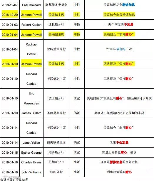 我们认为,美联储态度的逆转是这一次模式转变的核心因素。2018年10月前,美联储对加息的信心较足。2018年10月3日,美联储主席鲍威尔曾表示,“当前的利率距离中性利率还远得很”,美股随即出现了明显的下跌。之后美联储的态度有所软化,但相对市场预期依然较为强硬。2018年12月初到圣诞节前美股经历了惨烈的下跌,导致美联储的态度出现了显著的转变。从2019年1月起,“耐心”被大多数美联储官员多次提及,甚至几个鹰派官员也明显转向鸽派,2019年不加息成为了主流的看法。这一重大转变直接导致了资本市场从“Risk Off”模式迅速转向了“Risk On”模式。
