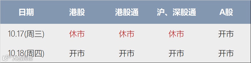 因重阳节假期,港股市场休市安排如下: