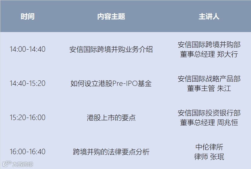 如您有意参加本次会议,请与安信国际的客户经理或者安信证券各分支机构国际业务联系人咨询。