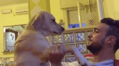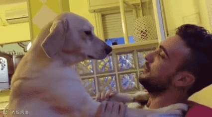 还有那么一只拉拉,因为犯错被主人训斥,为了让主人原谅自己,它直接上前给了男主人一个胸咚:不要这样啦,人家知道错了