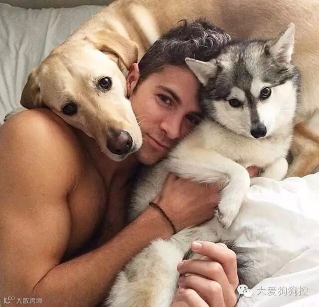 于是,帅哥和狗狗搭在一起时的画面,也是各种有爱和美好