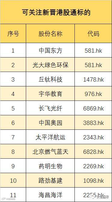 以下为安信国际为你整理可关注的新晋港股通名单,供参考。