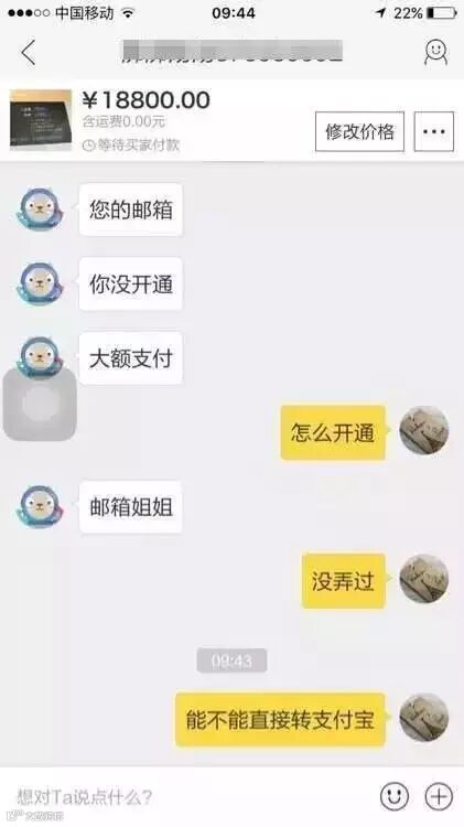 十分钟后,她收到了一封发件人为“支付宝”的邮件,邮件显示“支付宝提示买家已确认收货,因您未开通大额支付,您有笔交易19600元将在2016年11月13日晚上20点到账您的支付宝。”