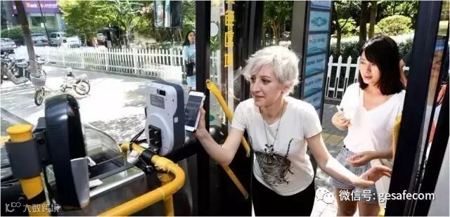 图为一位意大利画家在杭州体验刷支付宝乘公交