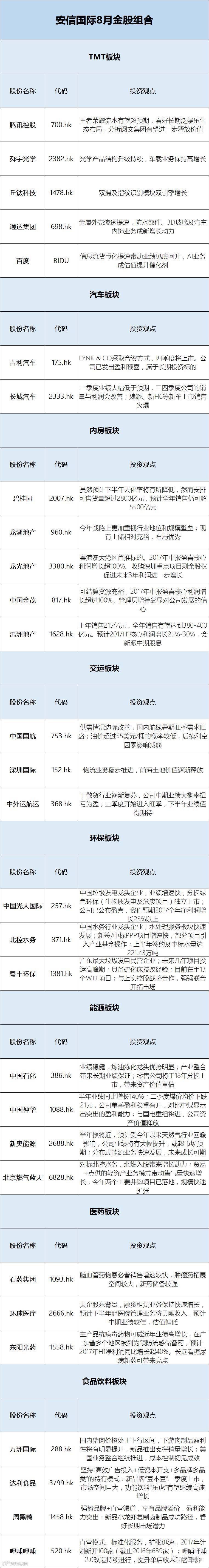 导读:安信国际发布8月精选港股组合,具体内容如下。