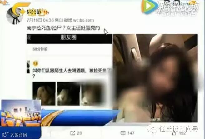 7月16日,一名网友在微博上PO文,放上数张女子裸照,并在照片描述中写:“南宁捡死鱼捡尸?女生还满漂亮的。”据网传照片,该名已经喝醉的女生似已被人捡上车厢,并不省人事的靠在座椅上,其上衣更被人乘机脱光拍下数张裸照。网友看了也摇头,回应说:“女孩子就该少喝点,最好别喝”,又有人表示“这种人该同情还是该批评”、“不自爱是活该”,惟该组照片在网上同时亦得到不少转发。