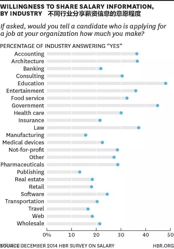 你甚至还可以通过LinkedIn、Facebook、Twitter这些社交网站先找到在那家公司工作的员工,勾搭他们,能获得更多的消息。你可能觉得这么做不太合适。但是在HBR最近的一个调查中,27%的受访者表示,只要有人问,他们会告诉应聘者他们的大致薪资。在教育、政府机关、法律行业,这一比重分别高达48%、44%和37%。