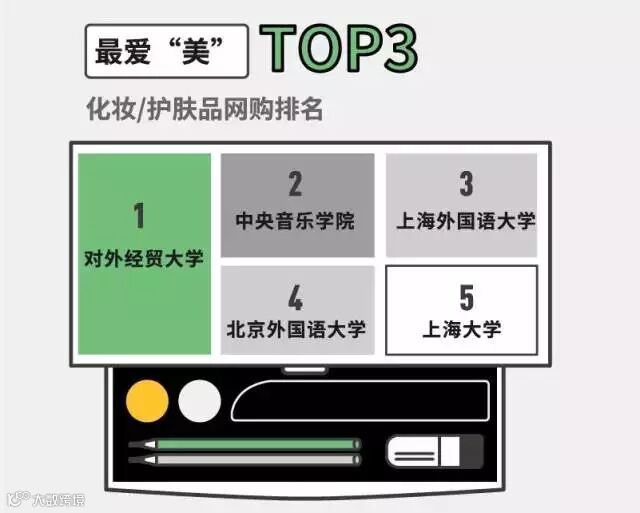 对外经贸大学购买化妆品和护肤品最多,女生们都很注重自己的形象:
