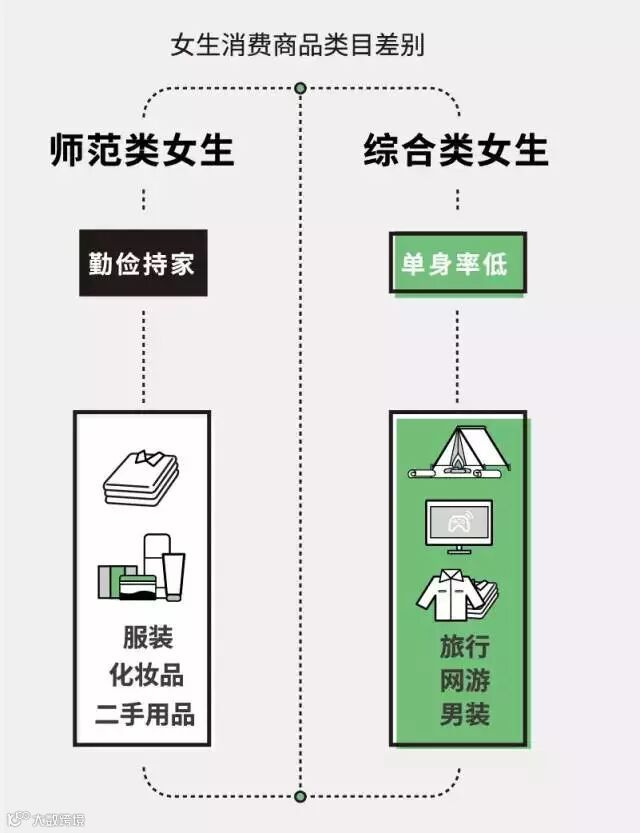 师范大学和综合大学的女生们,消费似乎也有明显差异: