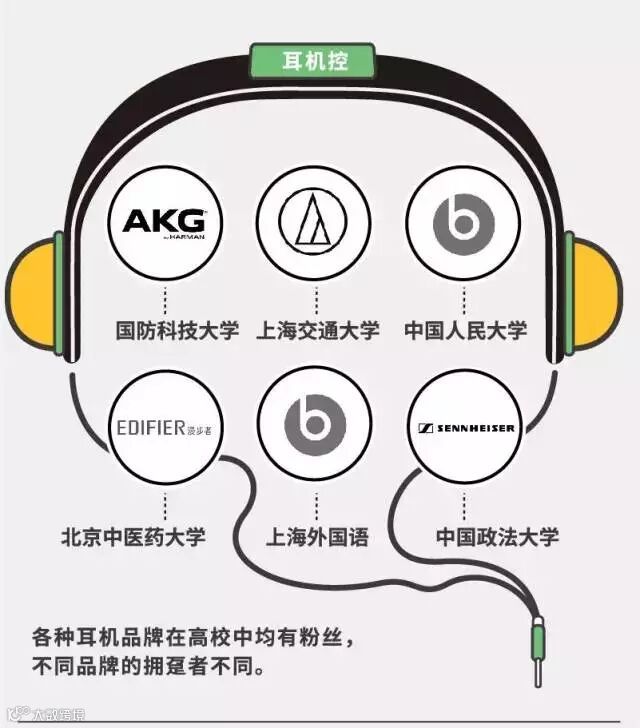 各个大学都有着自己最喜欢的耳机品牌,人民大学和上海外国语都是Beats的拥趸者: