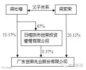 而公司实际控制人为梁家荣的父亲梁社增,梁社增亦为日喀则市世荣投资管理有限公司之控股股东。需要注意的是,日喀则市世荣投资持有世荣兆业0.37%股份。为此,梁家荣、梁社增、日喀则市世荣投资三者为一致行动人,直接或间接持有世荣兆业74.09%股份。梁家荣个人持股1.63亿,市值超15亿。